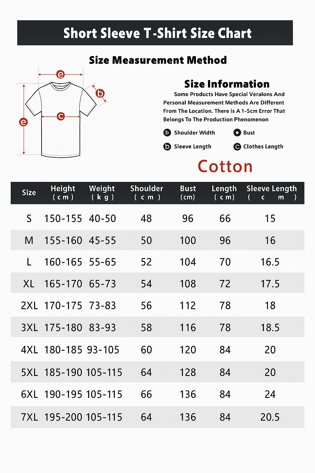 The size chart ranges from S to 4XL, ensuring a great fit for all body types.